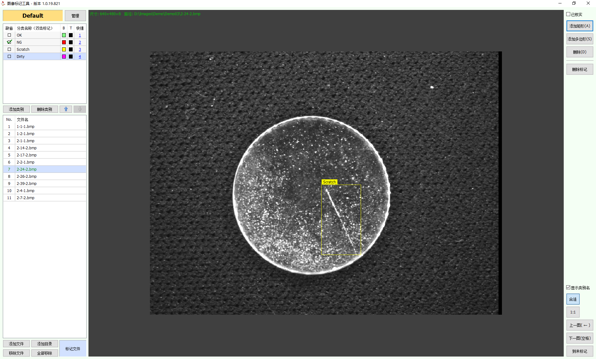 该软件是面向机器视觉行业的深度学习样本标注软件。具有以下特点: 1)式样管理,可以同时管理多个不同的样本标注需求; 2)支持分类、正矩形、多边形、像素掩膜等多种标注方式; 3)自定义快捷键,支持快速标记大量样本; 4)标注结果兼容LabelImg