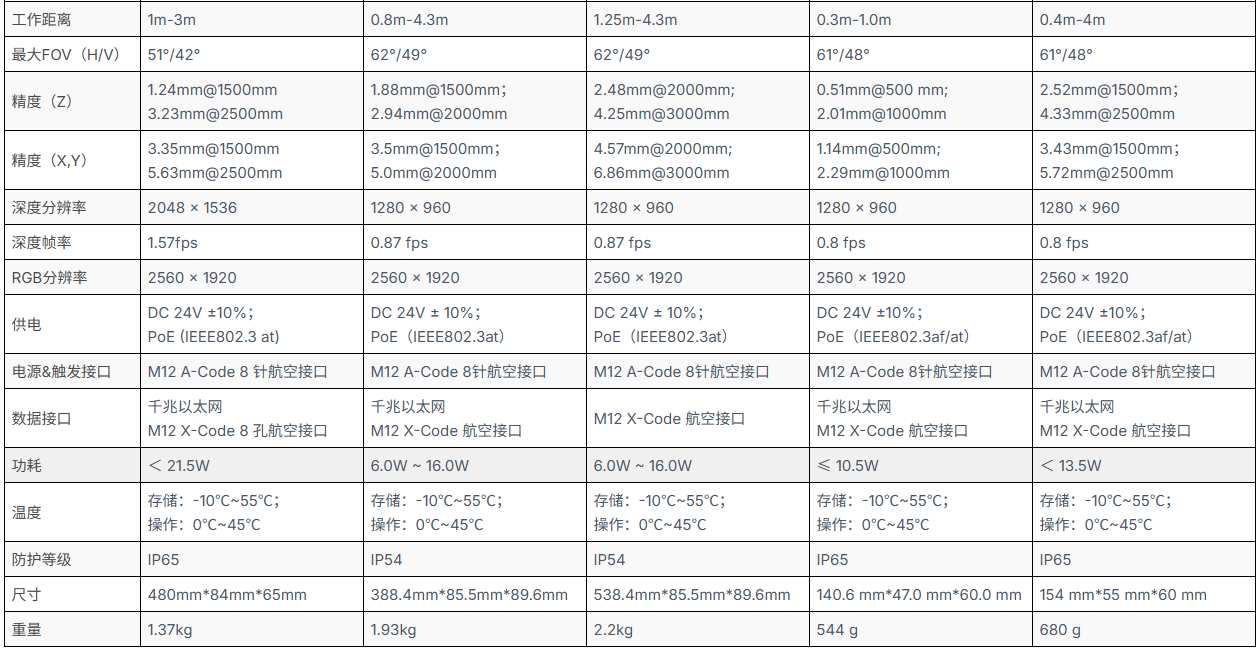 创新的结构光系统,亚毫米至毫米级Z轴精度,优化的5MP像素RGB支持更多2D图像处理功能,满足高精度算法要求,千兆网口、PoE供电。