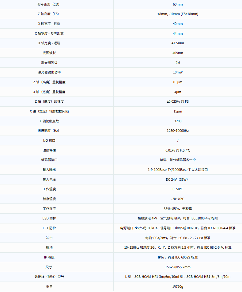 · Z 轴线性度:±0.05%的F.S.